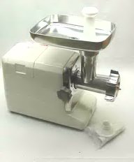 ![]() | #12 Electric Super Grinder (Item #699-853) Features a circuit breaker and reverse switch. Grinder has a Powerful 350 watt motor and comes with a 3mm plate, 5mm plate, 8mm plate, kubbe attatchment, 3 piece stuffing attachment kit, and a cast aluminum tray.